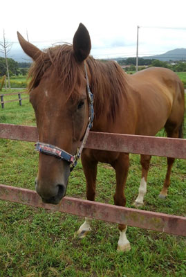『サカモトホースファミリー』では、中央からデビューし、園田と金沢で走った7歳馬コスモセブンと、船橋所属で重賞レースにも出走し、現在は繁殖生活を終えて21歳になったグレートテンの2頭が、その一員として、優しい会員さんたちの支えにより過ごしています。