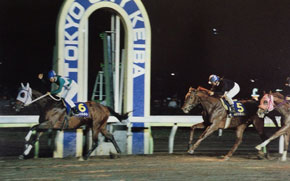 「長い騎手人生の中でもこれほど嬉しい勝利はそうない」と高橋三郎騎手。52歳のベテランが、デビューから13戦手綱を取り続けた馬で、第1回の栄冠に輝いた。