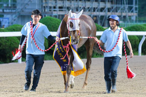 三冠達成できて嬉しいです。打撲で除外(宮之浦岳特別)の影響はなく、これから先、馬が成長していくためには馬体重増も想定内でした。今後は未定ですが、佐賀の3歳レベルではペースが遅く、馬の力を出し切れないので、強い相手にぶつけていきたいですね。