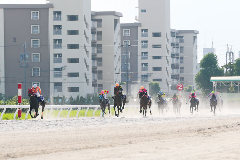 エムエスクイーンは3コーナーからほとんど仕掛けることなく後続との差を広げ、4コーナーでは今井貴大騎手がうしろを振り返った。懸命に追走したのは兵庫の2頭。エムエスクイーンは余裕の勝利かに思えた。