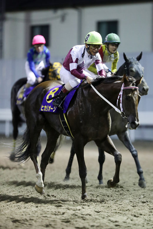 ヒカリオーソの父は、地方競馬の希代なる名馬フリオーソ。息子は父のような大型馬ではないが、それでもひと夏越して馬体重を7キロ増やし、455キロ。より力強さも出てきたそうで、クラシックの時よりさらにパワーアップしたかのような強さを感じさせた。父譲りの真面目さと勝負根性も武器で、父のような長きに渡る活躍を期待したい。