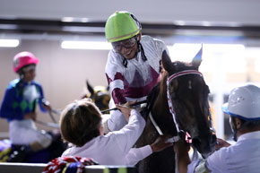 厩舎の皆さんが一生懸命仕上げてくれたので、少し間隔は空きましたが、それを感じさせないようなすごくいい仕上がりで、自信を持って乗りました。東京ダービー馬としてプレッシャーもあって緊張しました。ダービーもうれしかったですが、地元の重賞で勝つことができたこともすごくうれしいです。