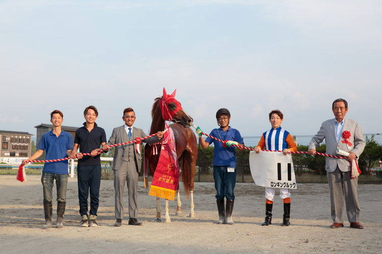 ロンギングルックは金沢デビューの牝馬。2歳時には重賞でも常に上位の走りを見せ、金沢競馬平成30年度最優秀2歳馬に選ばれた。そして重賞初制覇がダービーとなった。「金沢生え抜き馬で勝ったことが一番嬉しいですね」と金田調教師は目を細めた。