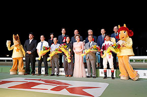 ヒカリオーソの次走について、「目標はジャパンダートダービーですが(鼻出血の影響を)獣医さんとも相談して、馬の様子を見ながらになります」と岩本調教師。殊勲の山崎騎手ともども“ダービー制覇”の喜びを語る一方、前日に起こった複数頭がからむ落馬事故に巻き込まれ、意識が戻らないままの柏木健宏騎手を気遣う様子もあった。