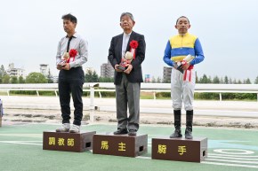 検量室から発せられた「1着2番」の声を聞いて、インザフューチャーの手綱を取った戸部尚実騎手は「よく差し返してくれました」と話して、ホッとした表情。惜敗となったエムエスオープンの今井貴大騎手は「馬の状態があまり良くなくて、レース前は着外になるかもと思っていたくらい。それでこれだけ走れたのですから、これから先が楽しみですよ。惜しかったですけど……」と振り返った。