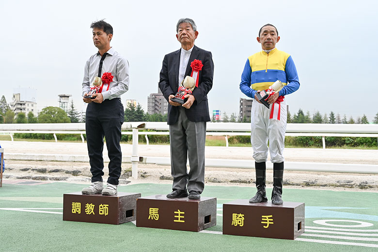 無敗でのゴールドウィング賞馬となったインザフューチャー。この日の専門紙には『ここでしっかり結果を出して、兵庫ジュニアグランプリに向かいたい』という川西毅調教師のコメントが掲載されていた。レース後、そのことに水を向けられると「今日の結果と(このレースの直前に行われた兵庫若駒賞の)エキサイターの勝ちかたを見るとちょっとね……」と言葉を濁した。それでも「勝ててよかったです。今はうれしいというよりも、腰が抜けたような感覚ですよ」と笑った。
