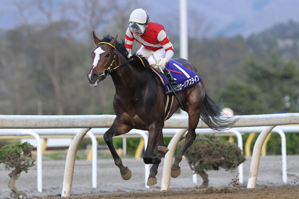 グランダム・ジャパン3歳シーズンも残すところあと2戦。他地区1着で15ポイントを獲得したグローリアスライブは、トップのゴールドリングと5ポイント差で3位につけた。高月調教師は「園田(5月16日・のじぎく賞)も考えたんですが、間隔もなく、細い馬ですので少し楽をさせてあげようかと思っています。関東オークスには出走する予定です」とのこと。