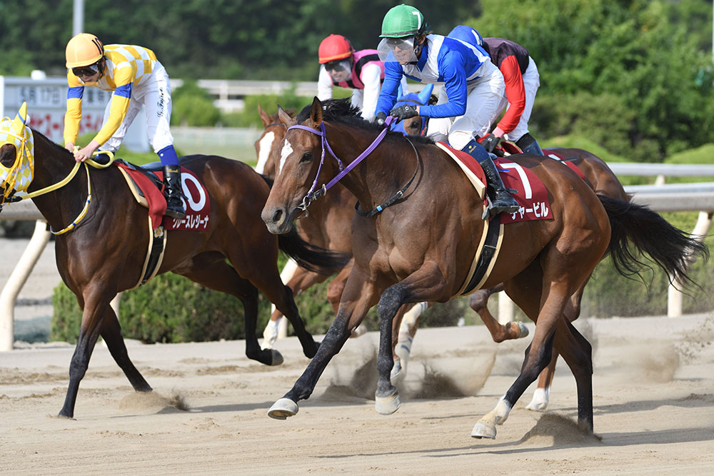 そうなると目標にされたアヴニールレーヴは苦しくなり、3コーナーでグレースレジーナが代わって先頭に。追いかけるように4番手からリリコも上昇していった。それでも最後の直線ではグレースレジーナが押し切りそうな態勢。そこに襲いかかって逆転を果たしたのが、道中は中団よりもうしろにいたチャービルだった。