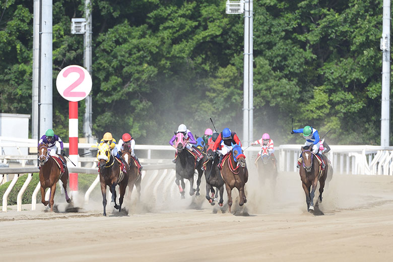 しかしながら、のじぎく賞は地方全国交流競走。普段の地元馬同士、地元騎手同士のレースとは違う。それが現れたのがハナ争い。先手を取ったアヴニールレーヴに、大井のグレースレジーナが競りかけていったのだ。その流れは速く、1周目のホームストレッチでは、先頭から最後方まで20馬身はあろうかという縦長の展開になった。グレースレジーナの手綱を取る藤本現暉騎手は、デビュー5年目。この日が初めての園田競馬場だったが、このレースまでに一般戦で4回騎乗した経験をいかし、攻めていく騎乗を見せた。