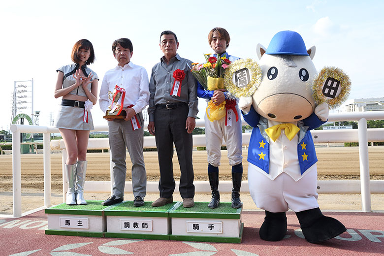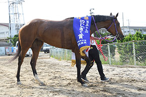 「リリコを目標にしてゴール前で交わしたら、内にもう1頭いましたね」と、中田騎手は大喜び。検量室前では兵庫所属騎手のほとんど全員から祝福されていた。中田騎手はデビュー12年目の32歳。これまでの苦労を多くの人が知っているからこそ、地元での重賞初制覇を皆が喜んだのだろう。