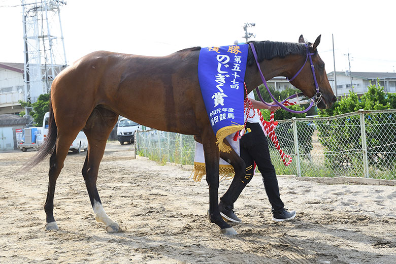 もともと素質はあったのですが、体が大きいので2歳のときは無理させないという方針にしていまして、春になってからようやくしっかりと乗り込めるようになってきました。でも、まだ後肢などにゆるいところがありますね。今回は前に引っ張ってもらえる展開になったのがよかったと思います。