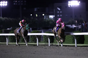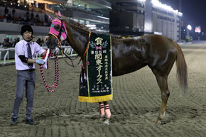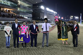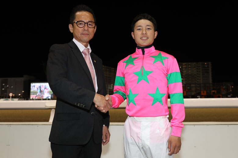 鞍上の武藤騎手はこれが重賞初制覇。キャリアこそ浅いが、南関東では条件交流戦で頻繁に騎乗しており、メリハリのきいた今回の騎乗ぶりからも、小回りでの仕掛けや立ち回りを手の内に入れている印象だ。パートナーのラインカリーナを管理するのは父の武藤善則調教師だけに、「いままで多く乗せてもらってきたし、少し恩返しができたかなと思います」と、喜びもひとしおのようだった。