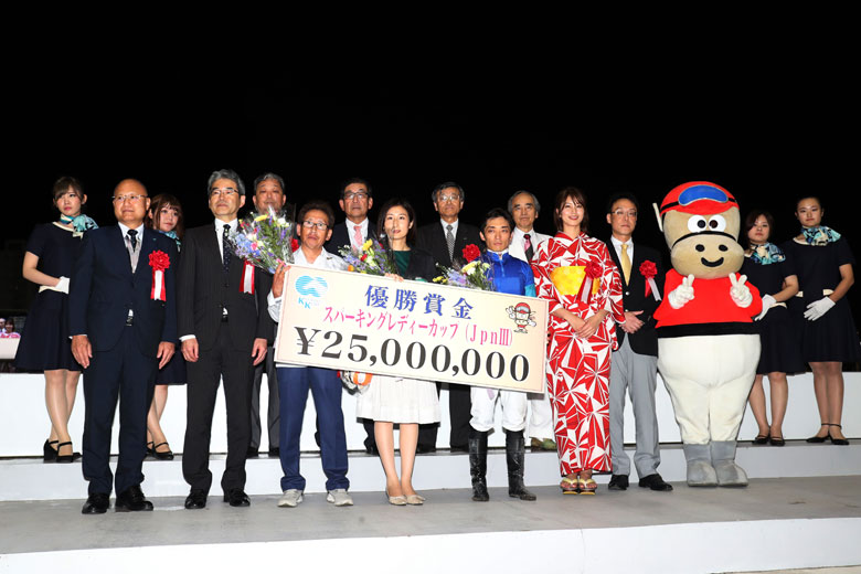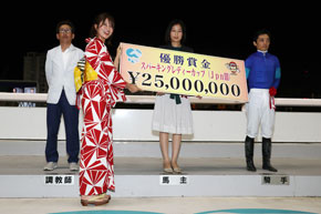 ゲートを上手に出て二の脚もついたので、想像した以上にいいリズムで1コーナーに入っていけました。一番いいかたちで走れていたのではないかなと思います。性格からも毎回全力で走るということが難しいのですが、こうして重賞を勝つことができましたし、賞金加算の面でも良かったなと思います。