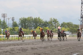 今年も大井から2頭、兵庫から2頭、高知から1頭が金沢の地に集まった。人気もこの遠征馬たちが中心で、単勝2.5倍で1番人気は、このシリーズ第4戦の兵庫サマークイーン賞の勝ち馬で兵庫のエイシンエール。3.1倍の2番人気は、14ポイントを獲得し上位につけている大井のステップオブダンス。5.0倍の3番人気こそ、徽軫賞を勝っている地元のサノラブだったが、地元兵庫で好走が続いているエイシンテースティが6.9倍で4番人気に続いた。