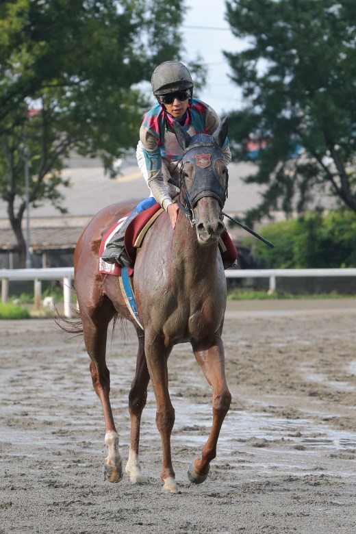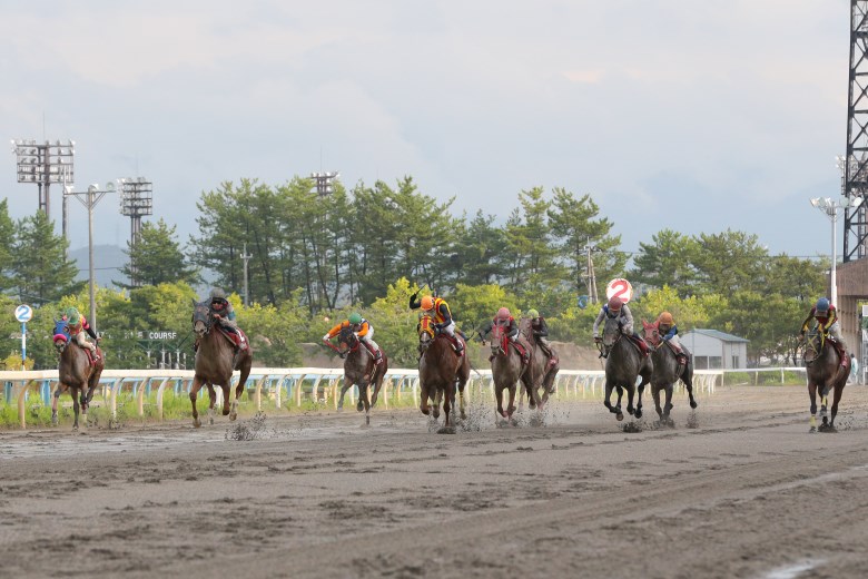 この日の金沢市内は朝から激しい雨が降り、第1レースから水の浮いた不良馬場でレースが行われていた。