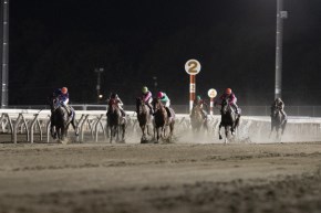 水の浮く馬場で、本来なら先行勢有利の時計勝負になると予想する。しかし、前半のレースは内を通った先行勢が案外苦しみ、内から3馬幅開けた場所を通った馬や、思い切って馬場の真ん中を通る馬の伸びが目立っていた。この日、初めて逃げ切り勝ちを収めたのが第7レース。その後、第10レースでも逃げ切った馬がいた。