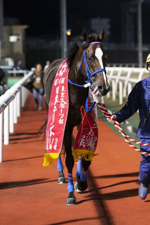 門別での重賞は初めてだったので、やっと勝たせられたという思いです。道営スプリントで指定されている競走とは違いますが、今年はJBCレディスクラシックが1400メートルなので、オーナーと相談の上、牝馬との戦いを前向きに検討したいと思っています。