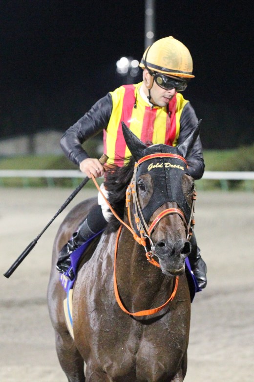 人気もなく、ゴールドドリームが強いと思っていましたし、気楽にレースを見ていた。いつもゲートが悪くジョッキーにはゲートさえ出れば好きに乗っていいと言いました。今日みたいに出ればどうにでもなる。調子は良くなっていたけど、勝ったのはビックリ。それでも、良い頃に比べるとまだかな……。