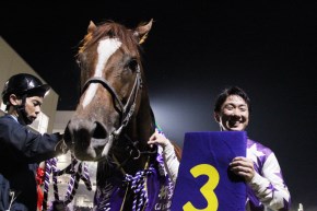 吉原寛人騎手は、「先生(音無秀孝調教師)からは2回に1回は出遅れるのでスタートには気をつけてと言われました。作戦としてはJRA勢の後ろにはつけたかった。今日の馬場は外々を回る馬が末脚は伸びていたので、レースでは早め中団につけることができて理想的でした。初騎乗でしたが、しっかりした馬体で、乗り味もすごく良かったです」