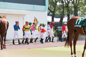 ポイントトップは2016年の覇者・永森大智騎手(高知)で「気負わずに乗りたいです」と話した。一方、「今年こそ優勝を!と意気込んでいます」と気合いを見せたのは4位の森泰斗騎手(船橋)。全国リーディングに輝いたこともありながら、前身のスーパージョッキーズトライアル時代を含め初優勝を狙う。山本聡哉騎手(岩手)は「腰を痛めて大事をとって17、18日のレースを休みましたが、今日はなんだかいけそうです」と入念にストレッチ。その横で昨年の覇者・桑村真明騎手(北海道)が「園田は3回目くらいなんですが、向正面が膨らんでいるんです」とコースの印象を話した。矢野貴之騎手(大井)も「園田はあまり来ることがないので」と乗り慣れない騎手がいる中、「僕の庭ですから!」と地元の吉村智洋騎手(兵庫)はニヤリと笑った。