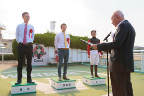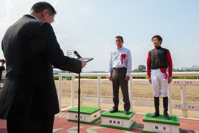 「馬は頑張ってくれましたが、園田のトップにねじ伏せられたという感じですね」と森騎手。3着は2馬身半差で真島騎手で「少し出遅れましたが、上手く立ち回って終い(の脚)もしっかり使ってくれました」