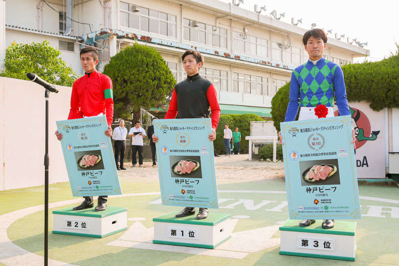 それらを尻目に、後続を3馬身離して吉村騎手が勝利。森騎手が2着だった場合のみ、吉村騎手の優勝は叶わないが、「ゴールの瞬間、すぐに2着を確認したら森さんじゃなかったので、優勝を確信しました」と吉村騎手。引き揚げてくると左手でガッツポーズをつくった。