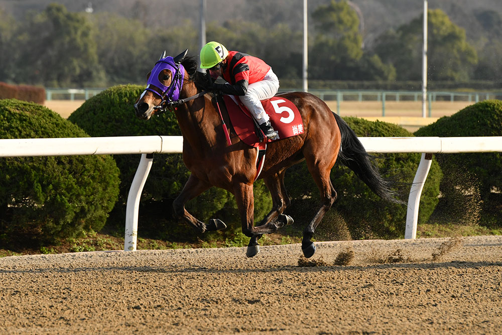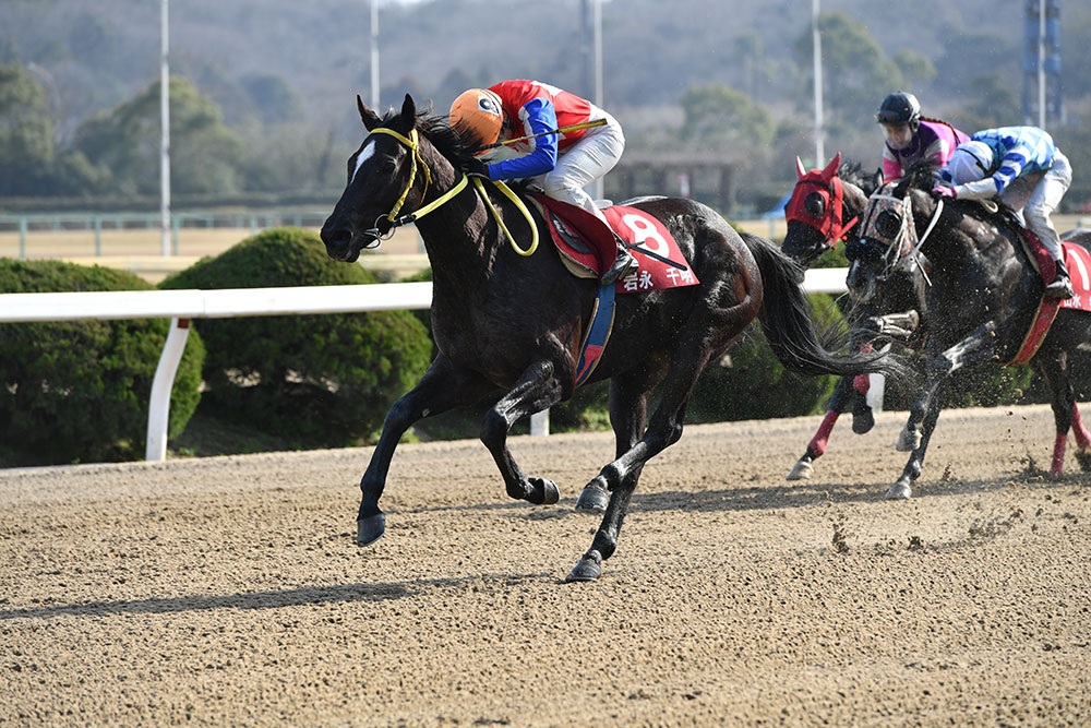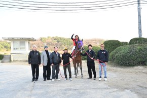 2戦目は調教師から2~3番手が理想と聞きました。馬が気持ちよくスタートを決めたのですが、溜めて最後にひと脚使いたいと思い、逃げにこだわらずこの馬に合ったレースができるよう心がけました。直線も伸びて、馬ががんばってくれました。技術がまだまだ足りませんが、名古屋も食らいつきたいです。