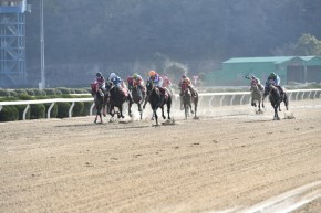 第1戦は唯一、単勝万馬券で最低人気の川島拓騎手がスタートから果敢にハナを奪った。しかし早々に勝負所で手応えが怪しくなり、3番手外につけた岩永騎手が直線で力強く伸びて勝利。2馬身半差に後方2番手から追い込んだ中島騎手、内をロスなく立ち回った宮下騎手が4着、5着にミシェル騎手だった。