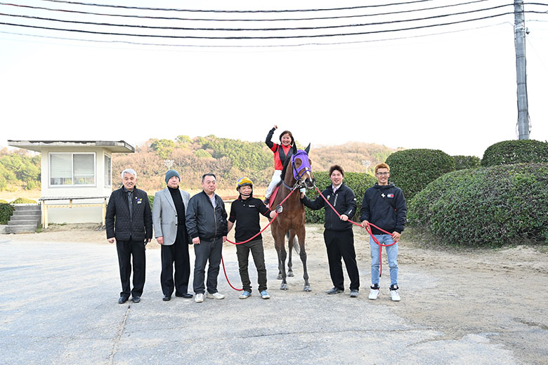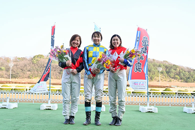 満面の笑みで引き揚げてきた岩永騎手は「ファンの声援が力になりました」と喜びを噛みしめた。LVR2017-2018の佐賀ラウンドはまだ復帰さえ決まっていない状況で、レース後に女性騎手たちに悩みを打ち明ける場面もあった。「女性騎手の姿を見て、『またレースに乗りたい』という気持ちが強くなりました。私にとってレディスは特別なレースです」と強い気持ちが結果に結びついた。