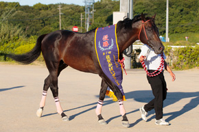 また、九州SSSで4勝(佐賀2勝、荒尾2勝)と活躍したギオンゴールドを管理していたのも九日調教師だ。同馬が九州SSSでマークした900メートルのレコードタイムを今回エイシンビリケンがコンマ1秒更新(52秒5)した。九日調教師は「レコード更新は嬉しいんですが、(ギオンゴールドの)名前が消えるのは少し複雑な気持ちですね」と感慨深げに語っていた。