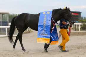 「坂口先生の重賞制覇も達成できたし、去年、超短距離戦を制したエイシンテキサスの面目を保てて良いところを見せてあげられました。9歳馬ですがまだまだ楽しみです」と加藤騎手。馬を囲み、皆が誇らしげで嬉しそうな口取りのひと時は、若きジョッキーの強い想いが実った瞬間でもあった。
