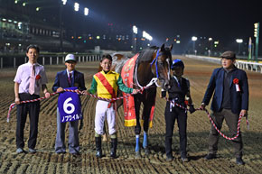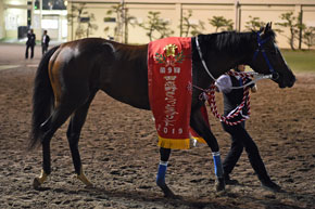 しかし勝ったのはノブワイルド。TUBEの前田亘輝オーナーの所有馬としても知られている。今年、関東ではまだ梅雨空が続いているが、この日は久しぶりに青空が広がり気温も上昇、夏らしい陽気となった。レース後の表彰式でインタビュアーから「夏が近づいてくるとノブワイルドの季節ですか?」という質問もあり、「そうですね。季節がくると思います(笑)」と左海誠二騎手。メンバー中唯一のダートグレードウイナーの地力を見せつけた。