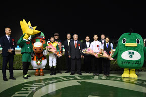 レースは、昨年の覇者で1番人気のアピアが先頭に立とうとしたところ、内から何がなんでもという形で主張していったのがノブワイルド。「小久保調教師と話しをして、行けるんだったら積極的に行こうと。前回(川崎スパーキングスプリント)は59キロで、今回は57キロだったので、もっとスパンと行くかなとも思ったのですがズブさはありました」と左海騎手。
