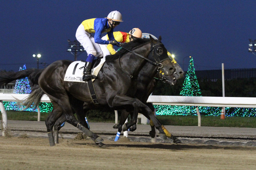 出走メンバーを見ると、近走で逃げて好成績を挙げていたのは木幡育也騎手(JRA)の騎乗馬のみ。しかし、その馬よりもスタートダッシュが速かったのが武藤騎手で、1コーナーあたりから後続を引き離していった。