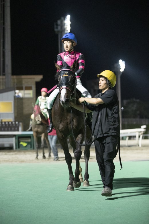 「前はペースが速かったので、差しが決まる展開で、直線はうしろから来る馬を気にしていました。最後は(3頭の)真ん中で併せ馬になったのでしぶとく頑張ってくれました」と勝った野中騎手。