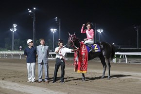 他地区からの遠征もあって、今年のダービーシリーズで唯一、人気が割れたのが高知優駿。勝ったのは、黒潮皐月賞と前走の敗戦で人気を落としていたリワードアヴァロン。近年、高知競馬は馬券の売上増や生え抜き馬の活躍で全国的な注目となっているが、リワードアヴァロンが高知競馬にまた新たな歴史を刻んだと言っていいだろう。父は中央から高知に移籍後、全国に遠征して活躍したグランシュヴァリエ。高知所属馬が種牡馬になること自体がきわめてめずらしいことで、その数少ない産駒から“ダービー馬”が誕生したということは奇跡に近い。一時期27万円まで落ち込んでいた高知優駿の1着賞金が、昨年の500万円からさらにアップして今年は700万円。今の高知競馬の勢いを示している。