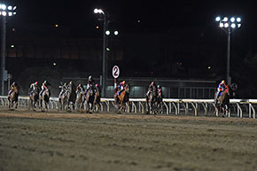 サルサディオーネは勝ち鞍すべてが逃げ切りというスタイルで、今回も鞍上の矢野貴之騎手が出ムチを入れながら1コーナーで先頭に立った。すかさずストロングハートやチークス、ラインカリーナが続いていき、そのうしろにメモリーコウ、さらにパッシングスルー、スマートフルーレらが追走、中央から移籍初戦となったラビットランは後方から。隊列は徐々に縦長となった。