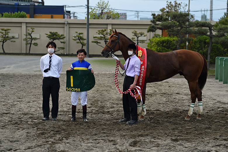 ワイドファラオは芝のニュージーランドトロフィーGⅡ、ダートのユニコーンステークスGⅢに続く重賞3勝目。手綱をとった福永祐一騎手は「スタートで脚を滑らすときがあるから、それだけを気をつけていた。もともと長くいい脚を使える馬だから早めにスパートをかけたけど、3コーナーまで『こうなればいいな』と思っていた展開になってくれた」と笑顔で話した。展開に恵まれた面はあったが、コンビを組んで8戦目だけに、馬の長所を生かし切っての騎乗。この2日前にJRA通算2300勝を達成した名手の技が光った。