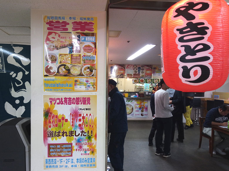 船橋競馬場には1階から3階まで各1軒の「東西商会」がありますが、ここで紹介するのは3階のお店。といってもメニューの違いはそれほどなくて、「あんかけ焼きそば」は全部の店に用意されています。