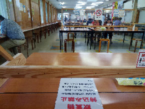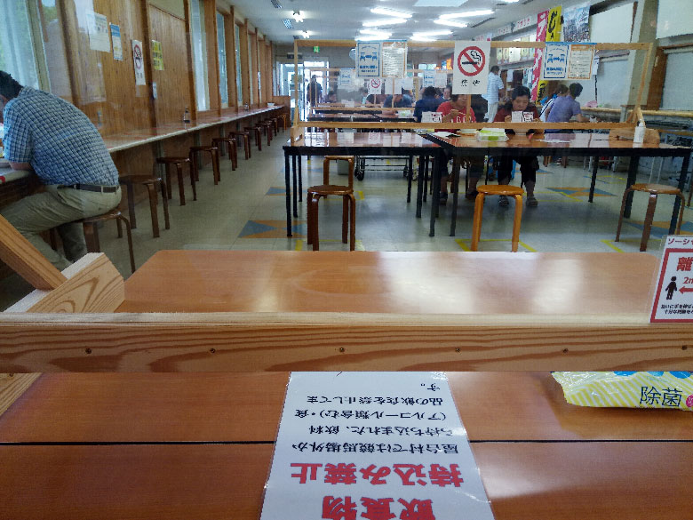 飲食コーナーはイスの数が以前の3分の1くらいで、テーブルの中央には透明なアクリル板のガードが設けられています。入場者は昨年の数字まで戻っていないようですが、徐々に元通りになってほしいものです。