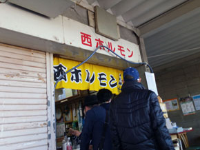 と閃いたので、さっそく西ホルモンの店の前に着席。カウンターのおねえさまにホルモン蕎麦と注文すると「ホルモンそばお願い~」と声がかかりました。