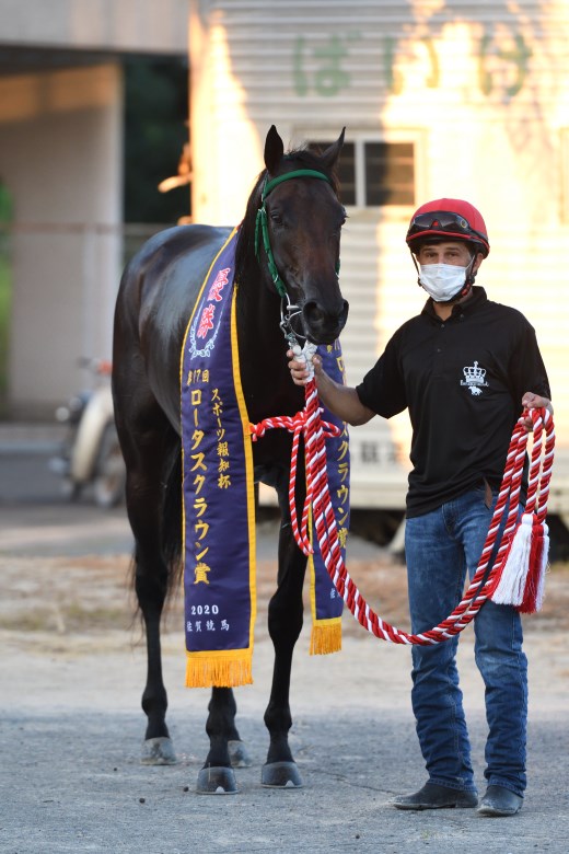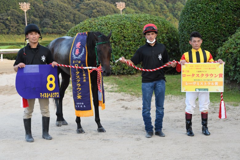 マイネルヘルツアスは前走の高知優駿(6月14日)ではリワードアヴァロンから3秒1差と離されたものの4着を確保し、佐賀から遠征のエアーポケット(10着)に先着していた。高知勢のロータスクラウン賞勝利は14年のクロスオーバー以来となる2勝目で、ともに別府真司調教師の管理馬。鞍上の倉兼育康騎手は佐賀の重賞はこれが初勝利で「これまでいい馬で連れてきてもらっていたのに2、3着で、ようやくご恩返しができました」と喜びもひとしお。転入馬のため西日本ダービーへの出走資格がないが「長い距離がいい馬なので、黒潮菊花賞(9月13日、高知1900メートル)を使うのではないでしょうか」(倉兼騎手)とのことだ。