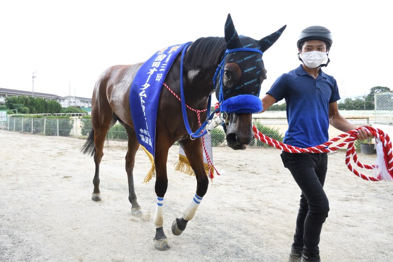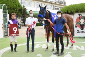 この日、43歳の誕生日を迎えた鞍上の下原理騎手にとって、重賞制覇で花を添えるうれしい記念日となったが、それだけではない。今回で通算70勝となった重賞勝利は兵庫では木村健元騎手(現調教師)が持つ最多勝記録に並ぶ偉業ともなった。「誕生日に勝つのは狙ってました。尊敬する先輩の記録に並んでうれしいですが、これに満足せず、もっと勝ちたいですね」と下原騎手。早くも新記録達成へ照準を向けた。