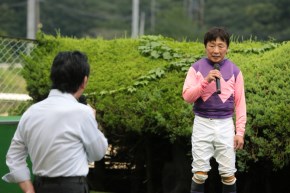 ミスカゴシマを目標にして、(同馬との)距離を測っていました。手応えはよかったですが、3コーナーで早めに先頭に立っていたので、ひょっとしたらゴール前でやられるかも?と思って目一杯追いました。今日はダービーを勝ててとてもうれしいです。