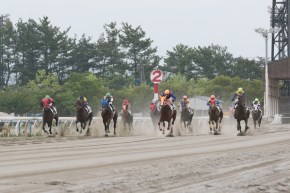 3コーナー。逃げていたエムティエーレが一杯になって後退、替ってカガノホマレが先頭に立とつと、外から一気に迫ってきたのがハクサンアマゾネス。4コーナーでカガノホマレをとらえると、直線で抜け出した。