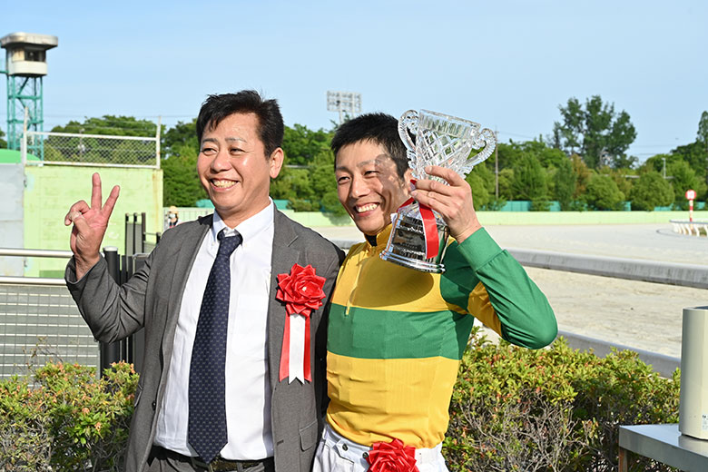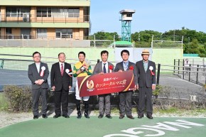 見せ場を作ったエムエスオープンは2馬身差で2着。今井貴大騎手は「4コーナーでの僕の気持ちは“行けそう”だったのですが、馬はいっぱいいっぱい。でもここまで休むことなく、本当によく頑張ってくれたと思います」と讃えた。