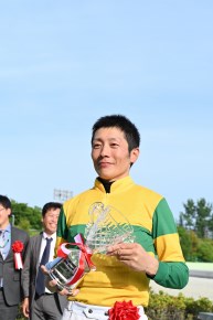 所属厩舎の馬でダービーを獲れて嬉しく思います。早めに先頭に立つと遊ぶ面がありますが、それでも実力が上だったと思います。前回も仕上がりがよくて、今回も中身が伴っていましたから、自信しかなかったです。井上先生はプレッシャーがあったと思いますが、僕は昨日、早い時間からよく寝ました(笑)。
