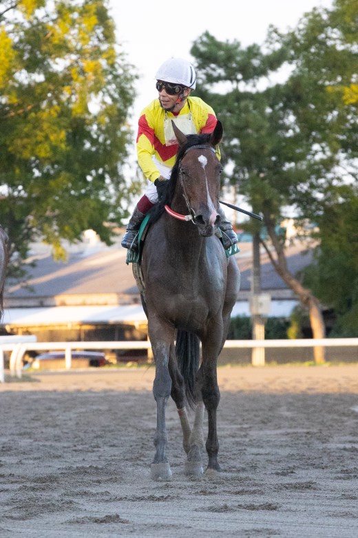 断然人気のサブノタマヒメは、パドックで2人曳きでも落ち着いた歩き。シンフジも2人曳きで、2人ともスーツ姿で臨んでいた。張りがある馬体は良好な雰囲気で、パドックでもこの2頭が目立っていた。