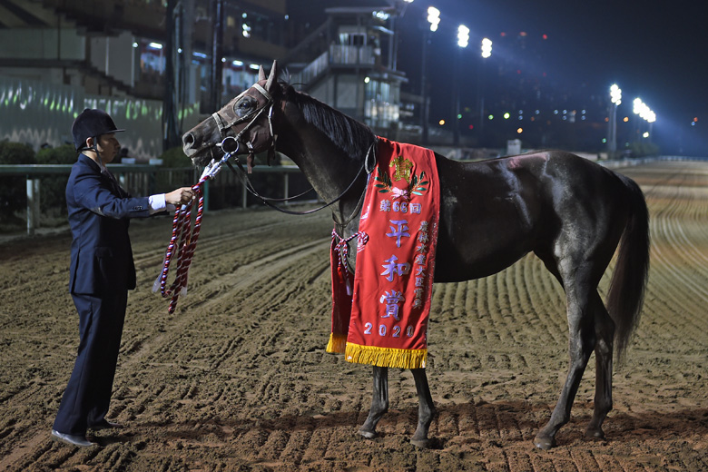 今回の平和賞は10頭中5頭が単勝10倍以下にひしめき合い上位人気が拮抗したが、単勝2.7倍で僅差1番人のマカベウスが快勝。