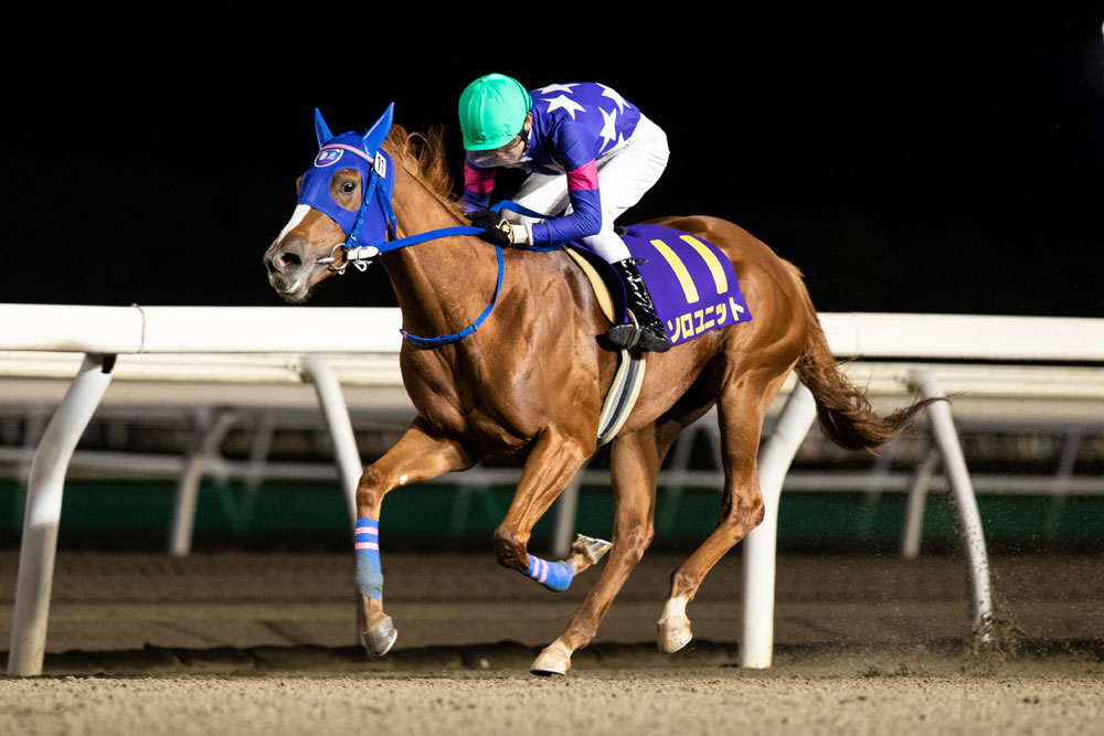 残り600メートルを過ぎてマウンテンムスメを交わした角川厩舎の2頭が、併せ馬をするかのように最後の直線へと入っていく。だが、気合いを入れるかのようにムチを振るったマーサマイディアに対し、ソロユニットは持ったまま先頭へと躍り出る。残り1ハロンからは独走態勢に入り、セーフティリードを保ったままゴール。4馬身差の2着には外から脚を伸ばしてきた中央のミコブラックが入り、最内で粘り込んだマーサマイディアが3着に残った。